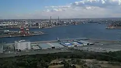 The Port of Chiba (千葉港, Chiba-kō) is the largest seaport in Japan, located in Chiba Prefecture on the interior of Tokyo Bay. The Port spans 24,800 hectares (61,000 acres) across the cities of Ichikawa, Funabashi, Narashino, Chiba, Ichihara, and Sodegaura.[1][2]