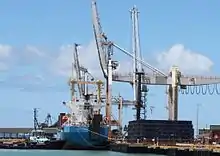 Port of Townsville is a government-owned Corporation and seaport in Townsville, Queensland, Australia. It is the third largest seaport in Queensland after Port of Brisbane and the Port of Gladstone. It is located south of the mouth of Ross Creek and north of the Ross River. Main shipping access is through Cleveland Bay. A second seaport, which only exports sugar is found about 100 kilometres (62 mi) north of Townsville at Lucinda and is also managed by Port of Townsville Limited.[3]