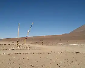 Portezuelo del Cajón, also known as Hito Cajón,[1] is a mountain pass on the border between Chile and Bolivia, located on the lower southeast flank of Juriques volcano, close to the Licancabur volcano. While Bolivian customs are completed at the top of the pass, Chilean customs are completed in the town of San Pedro de Atacama, 45 kilometres (28 mi) away.[2] The road over the pass begins at the junction with Chile Route 27, close to Cerro Toco.
