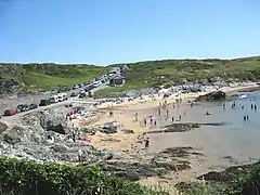 Porth Dafarch is a small bay on the west coast of Anglesey in North Wales. The inlet is on the west side of Holy Island, Anglesey about 2 mi (3.2 km) southwest of Holyhead and 1.5 mi (2.4 km) northwest of Trearddur Bay.[1] It has a sandy beach and is a popular visitor destination. In 2021 Porth Dafarch beach awarded as Blue Flag beach.[2]
