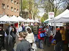 Portland Farmers Market is a nonprofit organization operating six farmers markets in Portland, Oregon, United States. The markets provide a direct connection to more than 200 vendors with deep roots in Oregon and Southwest Washington, including farms, nurseries, bakeries, meat and seafood providers, cheese makers and specialty food producers.[1] The flagship market at Portland State University was named the best farmers market in the United States for its size, varied offerings, live entertainment, weekly cooking demos, and more, by Bravo TV.[2] The same market was ranked #2 in the country for its number of vendors, amount of local, seasonal produce, year-round live music, the market managers' consideration of every detail, and making the most of what the region has to offer by supporting local farmers, by The Daily Meal.[3]