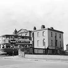 From the 1850s, horse-drawn omnibuses provided transport along South Richmond Street from Rathmines to the city centre. On 6 October 1871 work was commenced on the Dublin tram system on Rathmines Road, a few yards from Portobello Bridge.[16] They came into operation the following year, linking Rathgar, via Richmond Street, with College Green. There was just one standard fare within the city limits, which was much cheaper than the old horse-drawn omnibuses.[17] That year also the long-awaited improvements to Portobello Bridge (after the fatal accident of 1861) were carried out, the Tramway Company paying one third of the total cost of £300.