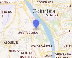 The site is situated on the left bank of the Mondego River, integrated into the buildings immediately near the Monastery of Santa Clara-a-Nova (in the east), Monastery of Santa Clara-a-Velha (in the south) and the Convent of São Francisco (in the north).[2]