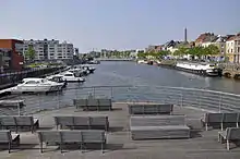Portus Ganda is one of the yacht moorings provided by the city of Ghent in East Flanders, Belgium. Located at Veerkaai 2 at a crossing in the old waterways of the river Leie, it opened in 2005 to create a destination for people touring the Flemish waterways by boat. The harbour master's office is located next to the new entrance of the Van Eyck swimming pool that faces the Veermanplein. (The pool's original entrance on the Julius de Vingeplein is now a staff-only entrance)