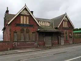 There was a goods yard at the site of the station, which was closed as part of the Beeching Axe. A scrapyard now occupies the site, although the station building and goods shed are still standing. The building has a slightly similar design to the now extinct Botanic Gardens structure on the Glasgow Central Railway. It has the company monogram "CR" carved in the stone above the two windows on the building's left frontal facade. It was in use as a bookmakers for many years in the 80s and 90s but by 2006, it was empty and falling into disrepair. It is now protected as a category C(S) listed building.[2]