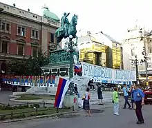 In Republika Srpska, memorials to victims of the Bosnian genocide are forbidden. Instead, memorials are erected to commemorate Serb perpetrators of war crimes such as Radovan Karadžić.[3] Secondary school textbooks discuss Karadžić without mentioning that he was convicted of war crimes and genocide.[4] In Serbia, convicted war criminals such as Vojislav Šešelj enjoy public support which goes along with Bosnian genocide denial as well as denial of other war crimes committed by Serbs.[5][6][7]