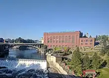 ![]() The Post Street Electric Substation viewed from the Spokane River Centennial Trail on the river's north bank | |