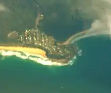 To the north lies the Beachcomber Holiday Park and Lake Brunderee. This small tidal lake is connected intermittently to the ocean by Potato Creek, and is a major habitat for swans and chestnut teal, as well as an important drought refuge. In 1999 the lake was declared a habitat protection zone due to its importance as a fish spawning ground.[2] To the south lies a small shallow, and often dry unnamed coastal lake which abounds in bird-life at various times of the year. Horse trails snake through the hinterland. Local fauna includes eastern grey kangaroos, red-necked wallabies, bandicoots, emus, echidnas, eastern rosellas, crimson rosellas and sea eagles.