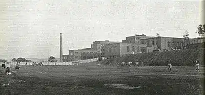 With the outbreak of World War I popular public opinion forced the school authorities to substitute Spanish for German in the language department and the inauguration of an ROTC unit. An ROTC auxiliary was also formed, with every girl in the school enrolled in the unit. The training course was discontinued in 1921 and the question of new quarters for the high school again came to the attention of the school board and public. The electorate defeated the initial plan for a new building by a 3534-1804 vote at a special election on November 5, 1924. In December 1930, the public voted 2449 to 1521 in favor of a $900,000 loan to build the present school on the site then known as Fisher's Farm. The school was ready for occupancy in January 1933.[8]