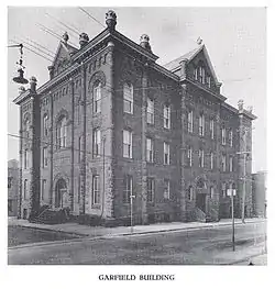 When school resumed in the fall of 1914 there was not sufficient room to accommodate the pupils. Within a period of six years the enrollment had increased from 100 to 300 and fully 100 more were listed for the 1914-'15 term. A number of plans were considered by the school board, among them a suggestion that a new building be erected at Nineteenth and Market Streets, or that the Garfield building, then the site of the high school, be enlarged by the addition of another story. The most practical idea, however, seemed to be the one proposed for enlarging the Patterson building at Twelfth Street to accommodate the high school pupils. Architect F. X. Reilly drew up plans to enlarge the Patterson building; Contractor Wertley was awarded the contract for $44,250 and on September 29, 1916, the new school opened with an enrollment of 500 pupils.[8]