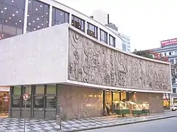Teatro Guaíra (Guaira Theatre) facade with Poty Lazzarotto's mural. Curitiba (PR), Brazil