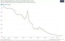 In February 1999, as much as 47.97 million people were classified as poor, representing around 23% of the nation's population.[1] However, this figure must take into account the slide of the rupiah in the Asian financial crisis. By July 2005, that number had been reduced to 35.10 million, representing 41.97% of the total population.[1] Figures from March 2007 showed that 37.17 million people were under the poverty line, representing 20.58% of the entire population.[1]
