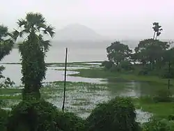 Many crocodiles have been seen on the lake side.[13] White-throated kingfisher, small blue kingfisher, Indian spot-billed duck, spotted dove, a few purple swamphens, purple-rumped sunbirds, bronze-winged and pheasant-tailed jacanas, ashy prinias, brahminy kite, red-vented, red-whiskered and white-browed bulbuls, cormorants, lesser whistling ducks, grey, purple and Indian pond herons, little, intermediate egret and great egrets, peregrine falcon, greater coucal, rose-ringed and Alexandrine parakeets, Eurasian marsh harrier (possibly winter visitor), woolly-necked stork (winter visitor) hoopoe and whiskered terns. butterflies, honey bees, bumble bees and beetles have also been sighted.[14]