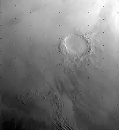 Poynting is an impact crater on Mars. It lies north of Pavonis Mons and west of Ascraeus Mons.