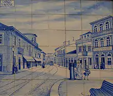 In the 1800s, Junqueira street was a busy shopping street and used as a way to reach the beach and gambling saloons, especially the nationwide famous casinos Salão Chinês and Café David. Due to the fact it is a wide area, the square started being used as an entrance for the people of the provinces of Minho, Trás-os-Montes and Alto Douro, that arrived in Póvoa due to medical advice to cure several health problems, in which they plan to cure by diving in rich iodine seawaters, sunbathing and breathing sea-aroma air. By this, the square gained relevance and was where the coachwomen parked the cars. In 1897, when the streetcar tramline was expanded a shunting line is created that goes by the square reaching the Baths Beach.[5]