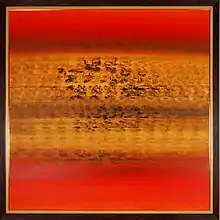 Prafulla Dahanukar painted abstract landscapes in generally one vivid and dominant color, with myriad shades and subtlety. She called her paintings "Eternal Space" as she believed that space is unending and couldn't be destroyed.