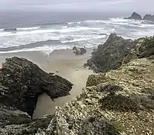 Praia das Adegas is a beach situated in Odeceixe, municipality of Aljezur, in the Atlantic west coast of Algarve, southern Portugal. It is one of the six official naturist beaches in the country.