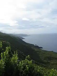 The parish has very rough topography with slopes oriented NW-SE which connect the low, coastal plain lands with the high, inland Achada Plateau reaching 881 m (2,890 ft) on Cabeço do Mistério. The territory is part of the Volcanic Complex of São Roque-Piedade. The Mistério da Prainha, a formation made up of lava flows emitted by a historic eruption above the parish (1562-1564), occupies the extreme west of it. This latter area, extends from the coast to the interior, and is characterized by its high fajã and massive lava delta along the northern coast (equally divided between Prainha and São Roque). This zone also pertains to the Recreational Forest Reserve of Prainha.[4]