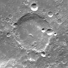 Prandtl is an impact crater on the far side of the Moon. It lies across the southeastern outer rim of the huge walled plain Planck.