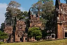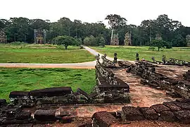 Prasat Suor Prat (Khmer: ប្រាសាទសួព្រ័ត) is a series of twelve towers spanning north to south lining the eastern side of a royal square in Angkor Thom, near the town of Siem Reap, Cambodia. The towers are made from rugged laterite and sandstone. They are right in front of Terrace of the Elephants and Terrace of the Leper King, flanking the start of the road leading east to the Victory Gate, on either side of which they are symmetrically arranged. Their function remains unknown.[1]