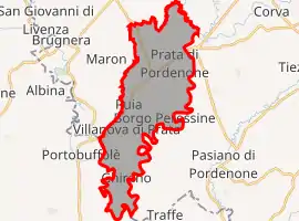 Prata di Pordenone borders the following municipalities: Brugnera, Mansuè, Pasiano di Pordenone, Porcia, Pordenone, Portobuffolé.