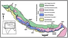 ![]() Spatial arrangement of the Himalayan tectonostratigraphic zones. Modified from N.R. McKenzie et al 2011[1] | |