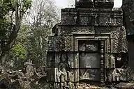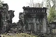There is little historical data about Preah Khan of Kompong Svay. French scholars argued it had been founded in the 11th century, probably by Suryavarman I.[2]: 136 [3]: 95 Evidence from sediment analysis suggests that the site was fully abandoned during the late 14th to 15th century, with maintenance to temples and infrastructure ceasing around the mid-14th century.[4] It is notable for its use as a royal residence during the kingdom of Suryavarman II, and served as a military outpost for Jayavarman VII during conflicts with the Cham in the late 12th century.[1][5]