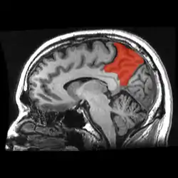 ![]() Sagittal MRI slice with the precuneus shown in red. | |