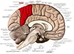 ![]() Medial surface of left cerebral hemisphere. (Precuneus visible at top left.) | |