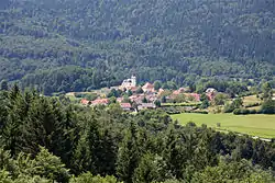 There are two churches near the settlement. On a hill to the northwest of the settlement is a 17th-century church dedicated to Saint Joseph. The parish church, on the southern outskirts of the settlement next to the local cemetery, is dedicated to Saint Vitus and was built in 1711.[8]