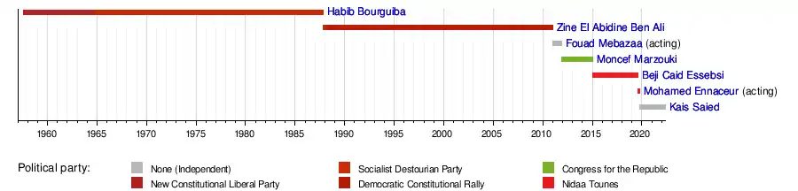 Tunisia has had seven presidents since the proclamation of the republic on 25 July 1957: