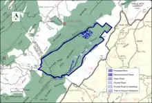 The boundary of the wildland, as determined by the Wilderness Society, is shown in the adjacent map.[1] Additional roads and trails are given on National Geographic Maps 788 (Covington, Alleghany Highlands).[3] A great variety of information, including topographic maps, aerial views, satellite data and weather information, is obtained by selecting the link with the wild land's coordinates in the upper right of this page.