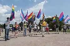 A pride flag is any flag that represents a segment or part of the LGBT community. Pride in this case refers to the notion of gay pride. The terms LGBT flag and queer flag are often used interchangeably.[1]