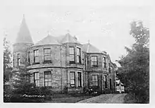 The estate, originally an outlying property of Crawford Priory, was purchased from the Earl of Glasgow by a wealthy merchant, James Martin Esq. in 1889.[1] In 1892, he aggrandized the existing house by the addition of a substantial East Wing, comprising a first floor Billiards Room, a conical tower and a large Dining Room. In addition to this, the existing Service Wing was expanded to accommodate a larger domestic staff. The architect for the work was James Ross Gillespie of Gillespie & Scott of Queen Street, St Andrews.[2] The same architect was responsible for the construction of the extensive Priestfield Maltings nearby.[3]