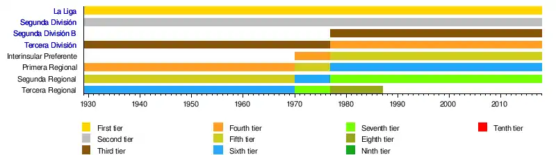 The Interinsular Preferente de Tenerife is the top tier of Tenerife football, with two leagues, the Primera Interinsular Tenerife and Segunda Interinsular Tenerife sitting below it. Clubs that achieve promotion from the Tenerife Preferente go to the Canarian Islands group of the Tercera Division RFEF.