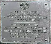 - This cairn marks the traditional spot from which Prince Charles Edward Stuart embarked for France.
