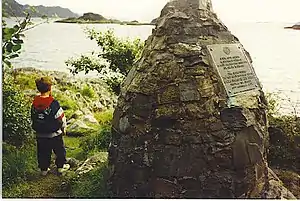 The Prince's Cairn marks the traditional spot from where Prince Charles Edward Stuart embarked for France from Scotland on 20 September 1746 following the failure of the Jacobite rising of 1745. The cairn is located on the shores of Loch nan Uamh in Lochaber. It was erected in 1956 by the 1745 Association, a historical society dedicated to the study, recording and preservation of the memories of the Jacobite period.