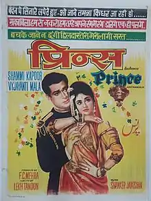 Prince is a 1969 Hindi movie produced by F. C. Mehra and directed by Lekh Tandon. The film stars Shammi Kapoor with Vyjayanthimala in the lead while Rajendranath, Ajit, Helen, Leela Chitnis and Asit Sen form an ensemble cast. The film's music was composed by Shankar Jaikishan with lyrics by Hasrat Jaipuri and Faruk Qaiser. Prince is a drama set in the times of resurgent India when the nation threw off the British yoke, but some states still languished under the Princely yoke. It is the story of a Prince who brought about his own downfall so that he may rise as a human being. Vayjayanthimala got married in 1968 and then completed this film in 1969.