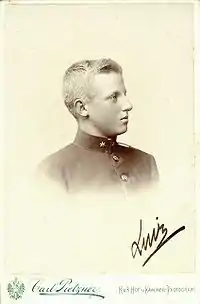 In 1890, fifteen-year-old Pedro, thirteen-year-old Luís, and their younger brother Antônio (nicknamed "Totó"), moved along with their parents to the outskirts of Versailles.[9] After the death of Pedro II in 1891 the monarchists made various efforts to restore the monarchy in Brazil. However, none of the imperial family provided any kind of aid or even words of explicit support.[10] Luís's older brother, Pedro, reached the age of majority in 1893, but he had no capacity or desire to assume the monarchist cause.[11] In the same year he left for Vienna, capital of the Austro-Hungarian Empire, to study in the military school at Wiener Neustadt.[12] According to his own mother it was "clear that he must do something and a military career seems to us the only one he should follow".[12] Luís and his brother Antônio followed their older brother at the same military school.[12]