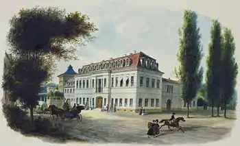After her husband's death in 1822, Karoline Amalie retired to Gotha Winter Palace (in German: Winterpalais) as her widow's seat -for this the residence was renamed by the population in her honour as the Widow's Palace (in German: Witwenpalais)-.