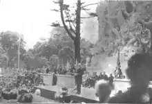 The monument, which was carved in situ by the Piccirilli Brothers[10] was completed in 1922 and dedicated by President Warren G. Harding. The festivities were marked by a 21-gun salute by the Princeton University Field Artillery ROTC and an invocation by the Right Reverend Paul Matthews, bishop of the Episcopal Diocese of New Jersey. The President received an honorary degree of Doctor of Laws from Princeton University the same day.[11]