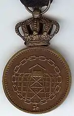 The Prisoner of War Medal 1940–1945 (French: Médaille du Prisonnier de Guerre 1940–1945, Dutch: Krijgsgevangenenmedaille 1940–1945) was a Belgian war service medal established by royal decree on 20 October 1947 and awarded to all members of the Belgian Armed Forces imprisoned by Axis Forces during the Second World War.[1]