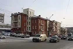 Prombank Dormitory (Russian: Общежитие Промбанка) is a constructivist building in Tsentralny City District of Novosibirsk, Russia, built in 1927 by architect I. A. Burlakov.[1][2]. It is located on the corner of Krasny Avenue and Kainskaya Street.