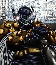 | Abilities | Genius-level intellect Peak human physical and mental conditioning Highly skilled hand-to-hand combatant and martial artist Expert in the use of various weapons Cybernetic implants, helmet and armor further augment physical attributes |