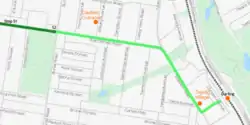An alternative, which appeared in Darebin's 2010 proposal, has the tram heading north on Gilbert Rd, east on Henty St, north on Spratling St, then east on Edwardes St to the terminus.[19] This route avoids the steep grade around Edwardes Lake.