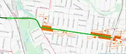 Leading up to the 2013 Australian federal election, the Australian Greens proposed the creation of a new east–west route between North Richmond and North Melbourne railway stations.[37] It would travel along Victoria Street/Parade for most of its route, before diverting south in the west to terminate in front of North Melbourne station. Most of the route is currently used for other lines, such as Route 109 between St Vincents Plaza and North Richmond Station and Route 57 between Errol Street and Elizabeth Street. Tram tracks currently exist on some sections of Victoria St, but are unused and in disrepair. The Rail Futures Institute proposed similar routes along Victoria Street/Parade in 2018.[17]