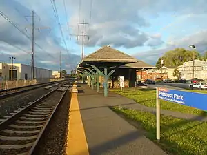 Prospect Park station (also known as Prospect Park–Moore station) is a station along the SEPTA Wilmington/Newark Line and Amtrak Northeast Corridor. Amtrak does not stop here; only SEPTA serves this station. The station, located at Lincoln and Maryland Avenues in Prospect Park, Pennsylvania, includes a 44-space parking lot. Like the nearby Norwood Station, Prospect Park Station is located right next to the town's library, in this case the Prospect Park Public Library. It is also located near the Borough Hall.