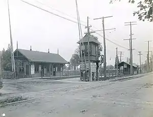 The station depot on the northbound side of the tracks, rebuilt in 1913, was 40 by 14 feet (12.2 m × 4.3 m) while the southbound side had one of 10 by 8 feet (3.0 m × 2.4 m).[13]