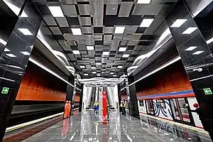 Prospekt Vernadskogo (Russian: Проспект Вернадского) is a station on the Bolshaya Koltsevaya line of the Moscow Metro. It was opened on 7 December 2021 as part of the section between Mnyovniki and Kakhovskaya. Passengers can transfer to Prospekt Vernadskogo.[1][2]