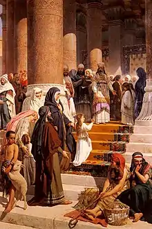 He was born in Ferrara and died in Rome. As a boy, his family had moved to Rome and he learned his trade with Alessandro Mantovani, who was engaged in frescoing loggias of the Vatican. He the studied at the Accademia di San Luca with Tommaso Minardi and, for a year, with Friedrich Overbeck. This imbued him with the fading styles of Purismo circulating in Rome. In 1865, he gained one of the commissions to decorate San Paolo fuori le Mura, specifically the chapel of the choir, where he depicted the Life of Pope Gregory VII. He painted for rooms in the Villa Torlonia in Rome. He painted an altarpiece depicting the Baptism of Christ (1879) for the Cathedral of Ferrara.[2] He also frescoed for the Sanctuary of Our Lady of Buon Consiglio in Genazzano.[3] In 1894, he painted a triptych of the Adoration for the apse of the church of the Addolorata in Mosciano Sant'Angelo.[4] He painted two large canvases: Funerals of Caesar and Cato departs from the Theater during Floralia (1900), now on exhibit in the Sala de Prensa Fray Camilo Henríquez, Biblioteca Nacional of Chile.[5]